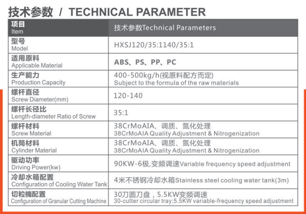 高速高效塑料混色擠出造粒機(jī)組是專用于工程塑料(ABS、PS、PP、PC)混色擠出造粒的機(jī)組,該機(jī)組采用多項(xiàng)先進(jìn)技術(shù)和配置,使該機(jī)能適用于工程塑料高速度高效的混合、塑化、排氣,使物料著色均勻、表面光亮、顆粒密實(shí)、產(chǎn)量高(中120mm機(jī)型產(chǎn)量高達(dá)450~500公斤/小時(shí))。